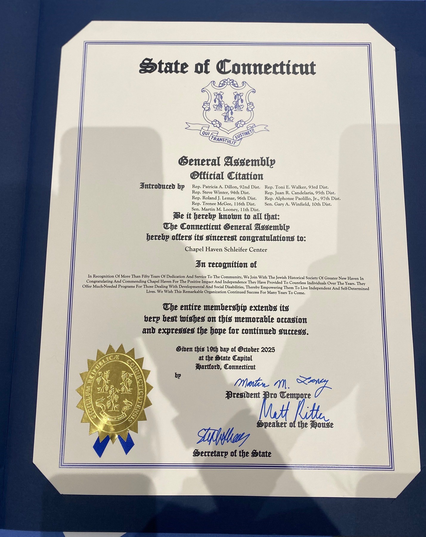 “Over the past several years we have developed a tradition of celebrating the lives and works of exceptional contributors to the quality of life in our Greater New Haven community, and whose legacies are important chapters in the rich history of our local Jewish community,” he said. “Today we recognize and salute Chapel Haven Schleifer Center and the people whose vision established and continue this extraordinary pillar of our community.”