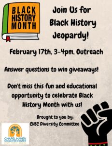 Mark your calendars and join the CHSC Diversity Committee Tuesday, Feb. 17 from 3-4 p.m. in Outreach for a fun and interactive game of Black History Jeopardy!